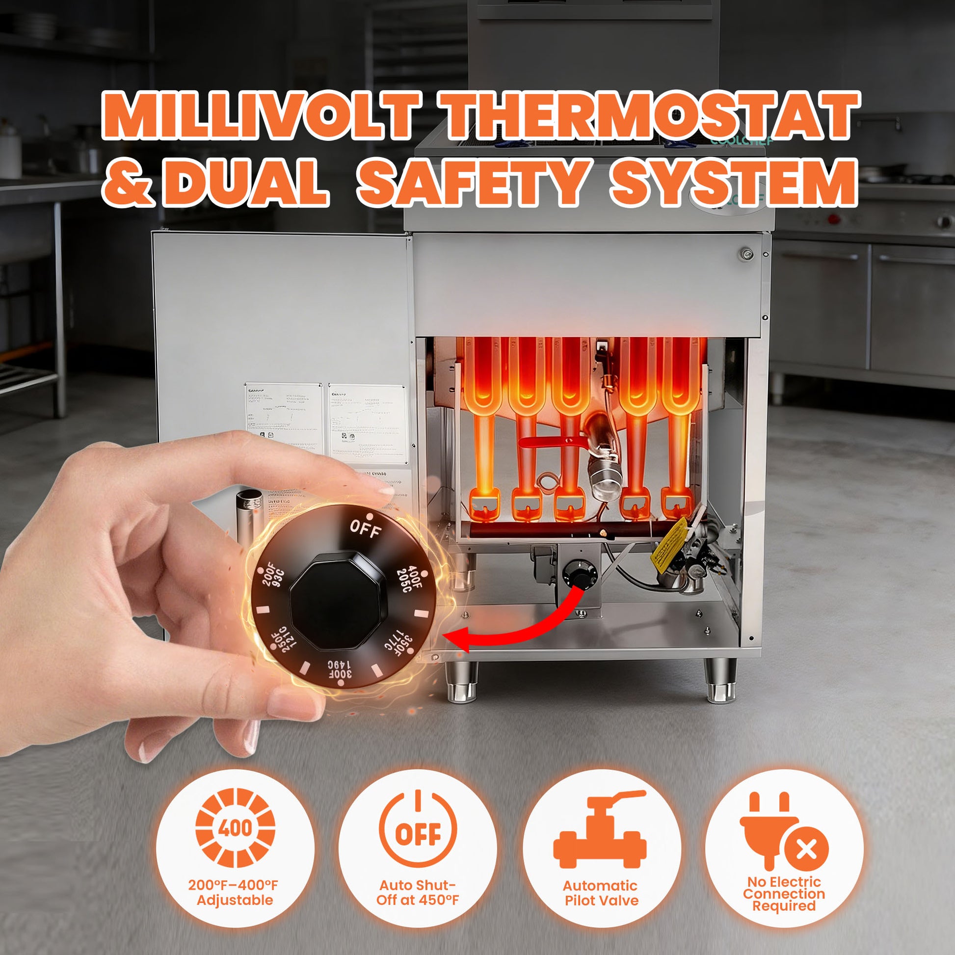 Gas fryers require proper gas hookups, so ensure your kitchen is equipped with natural gas or propane lines before purchasing.