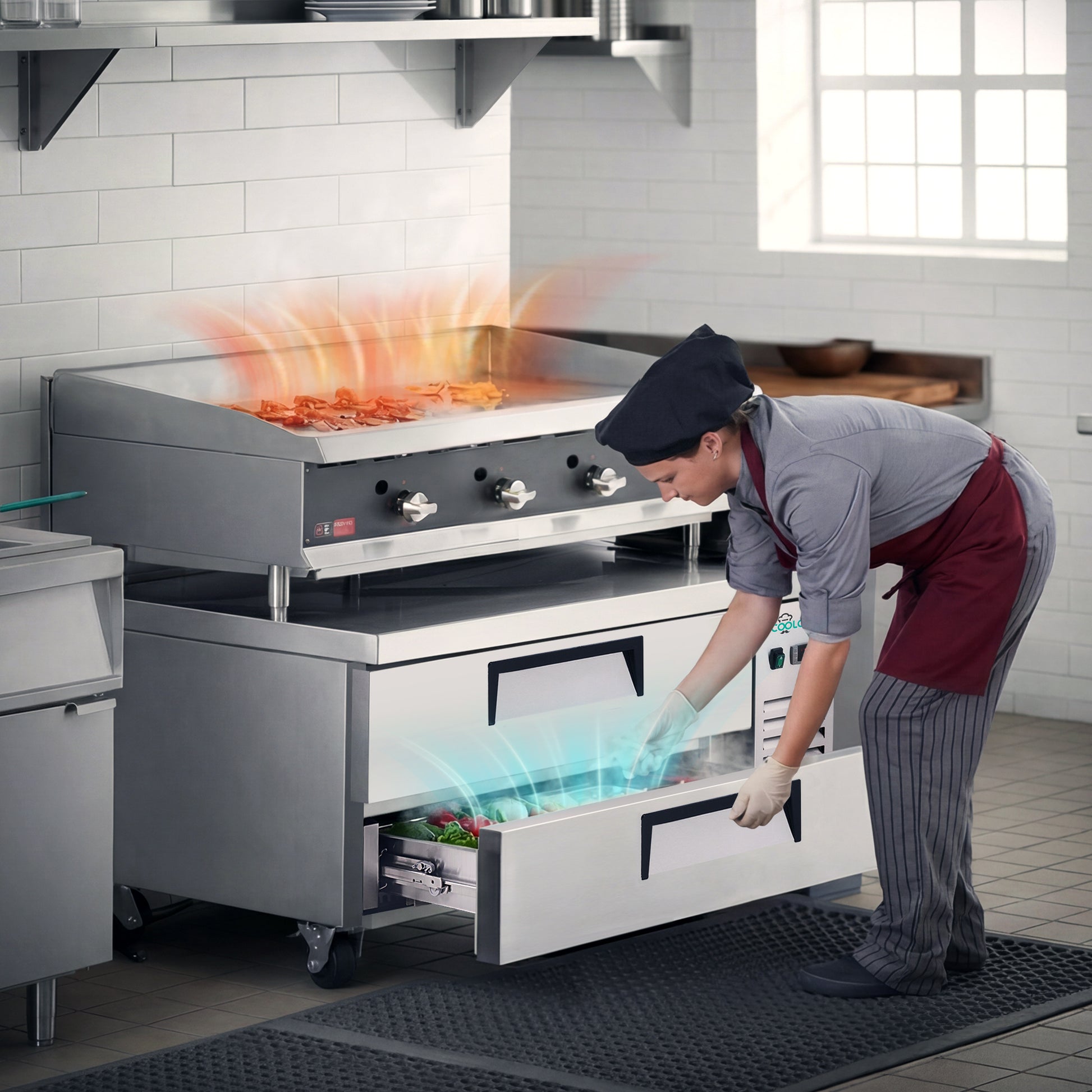 A: Yes. It’s a 48" commercial refrigerated chef base with drawers for cookline ingredient storage under griddles and ranges.