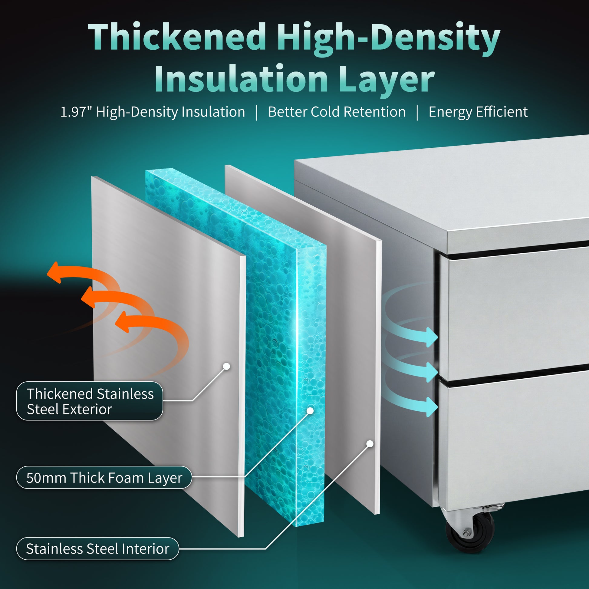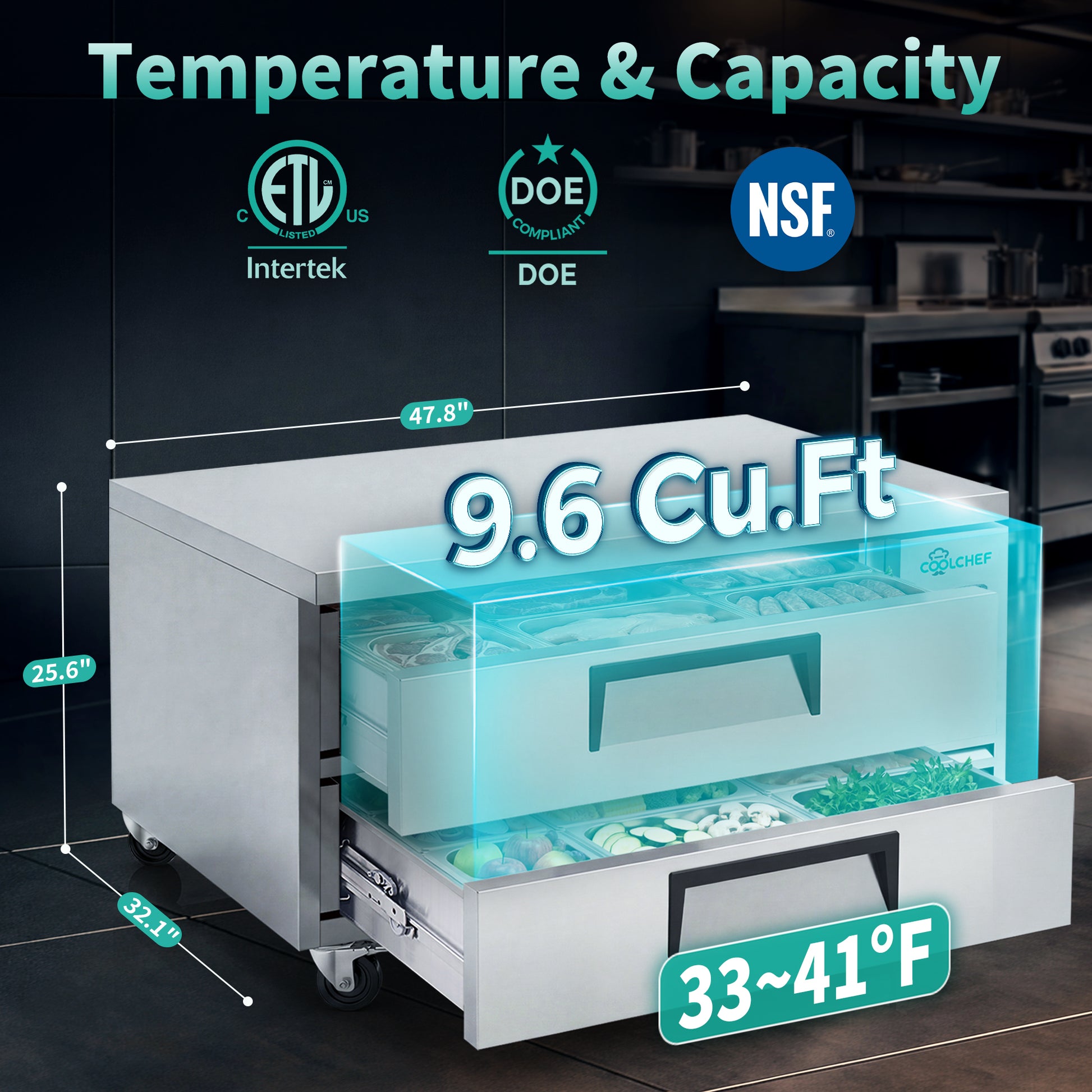 48" 2 Drawer Commercial Chef Base Refrigerator ETL